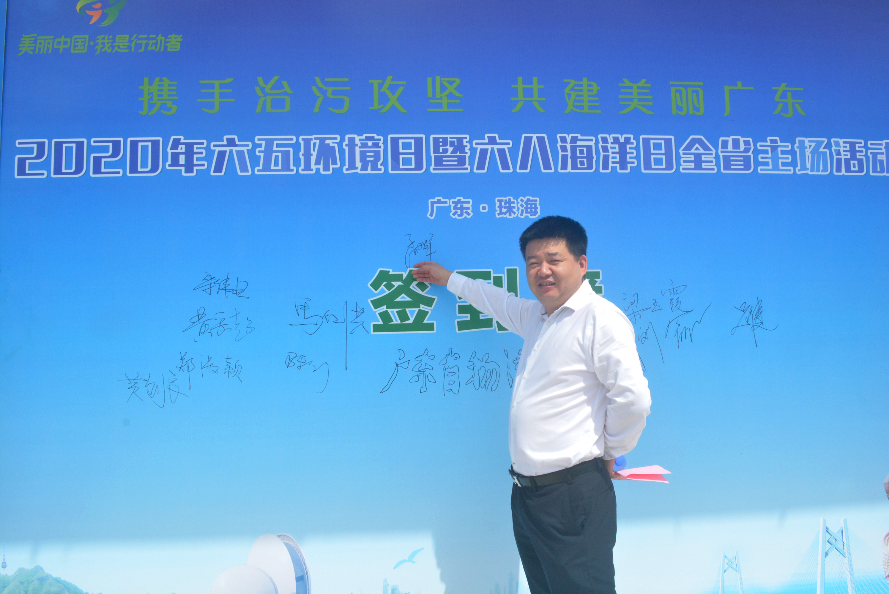 2020年6月5日,六五環(huán)境日暨六八海洋日會場活動在珠海香洲區(qū)海天公園舉行、珠海市委副書記、市長姚奕生、珠海市副市長劉嘉文、省生態(tài)環(huán)境廳、省文明辦、省團委、省環(huán)境保護宣傳教育中心等領(lǐng)導出席。合誠環(huán)境董事長孟輝受邀出席并作為企業(yè)代表宣讀倡議響應(yīng)書。
