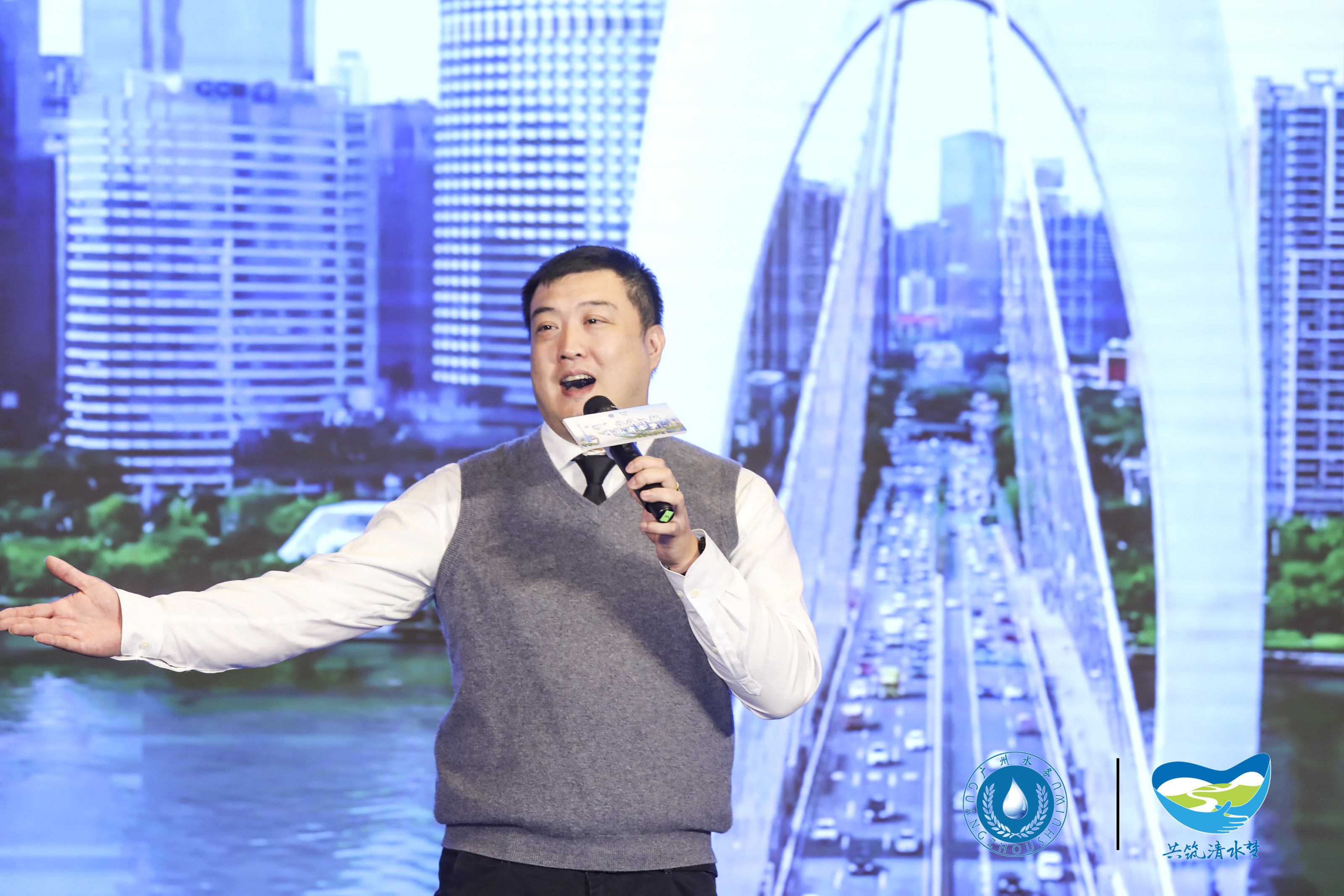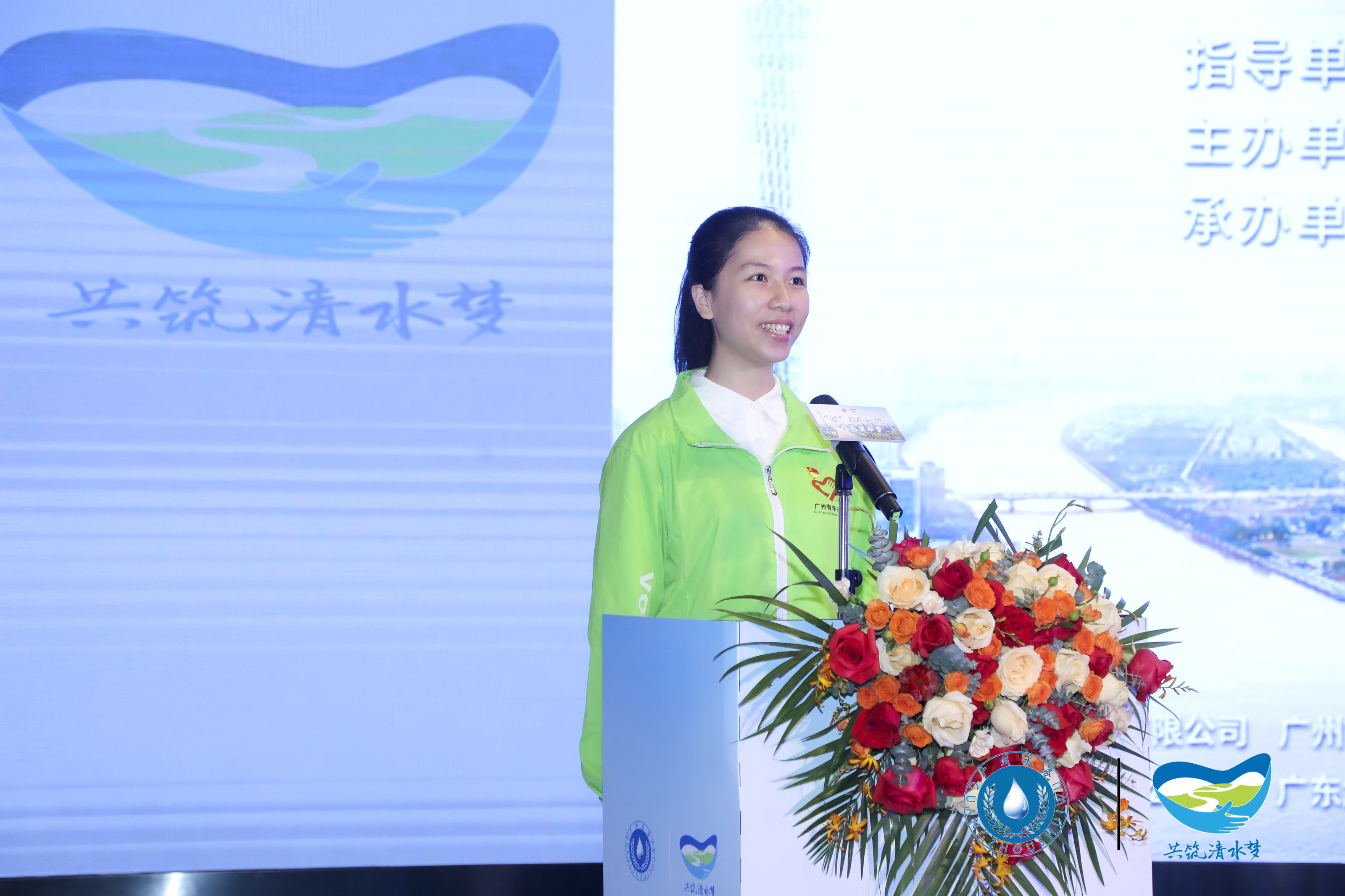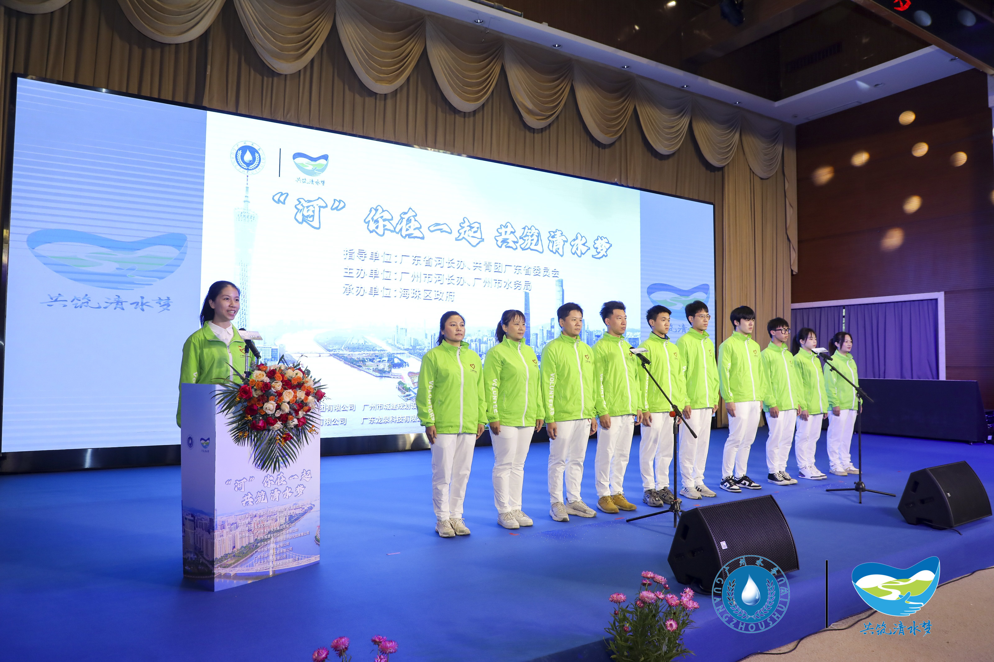 在激情浪潮接近尾聲的時候,現(xiàn)場播出由廣州市河長辦與廣州市水務(wù)局共同出品的“共筑清水夢”全民治水品牌宣傳公益歌曲MV——《清水如許》,現(xiàn)場由廣州市水務(wù)局黨員志愿服務(wù)隊朱雷和廣州市河涌監(jiān)測中心杜冬陽上臺演唱,為整場活動畫下圓滿句號。