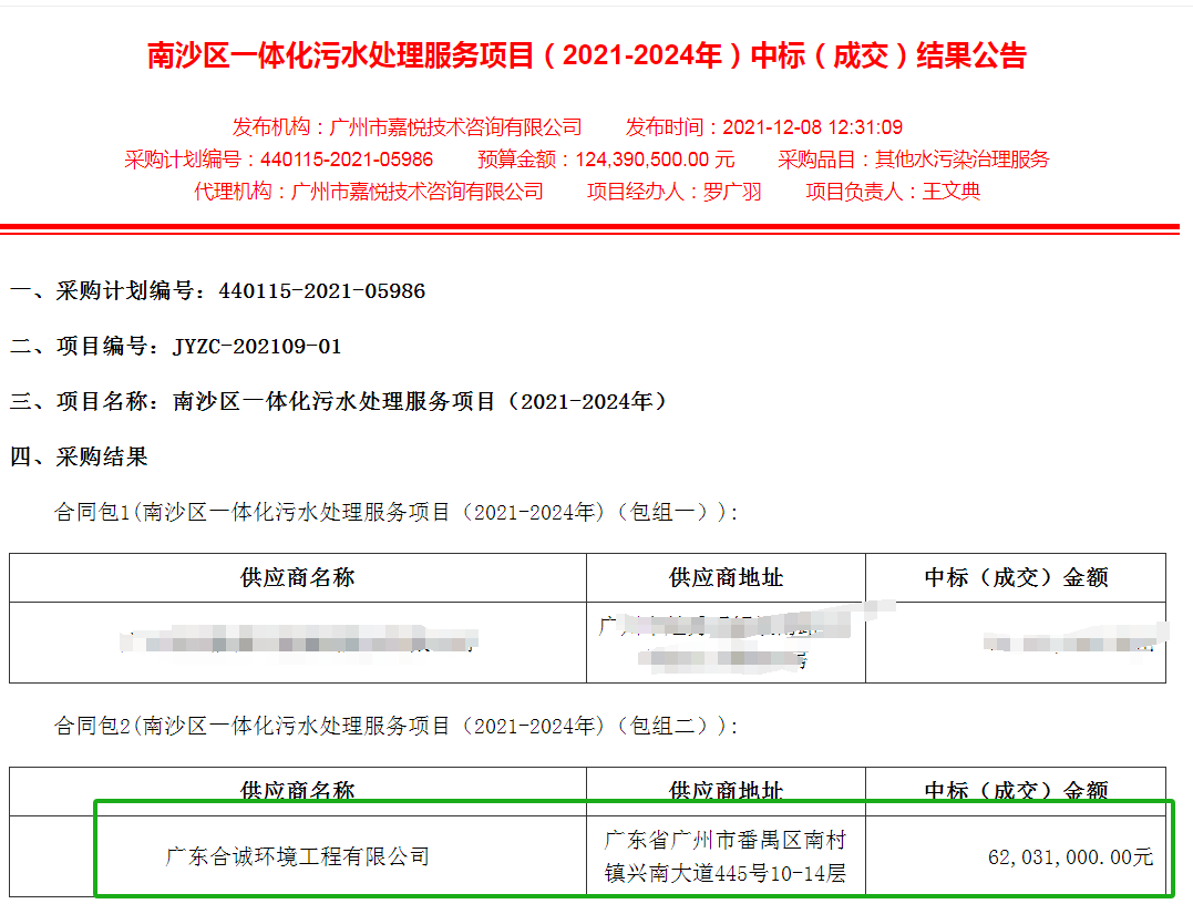 2021年12月8日,合誠(chéng)環(huán)境憑借多年污水設(shè)施建設(shè)及運(yùn)營(yíng)一體化服務(wù)經(jīng)驗(yàn)、污水治理相關(guān)的專業(yè)技術(shù)、管理認(rèn)證、服務(wù)資格(資質(zhì))及履約保障能力等實(shí)力優(yōu)勢(shì)中標(biāo)該項(xiàng)目。