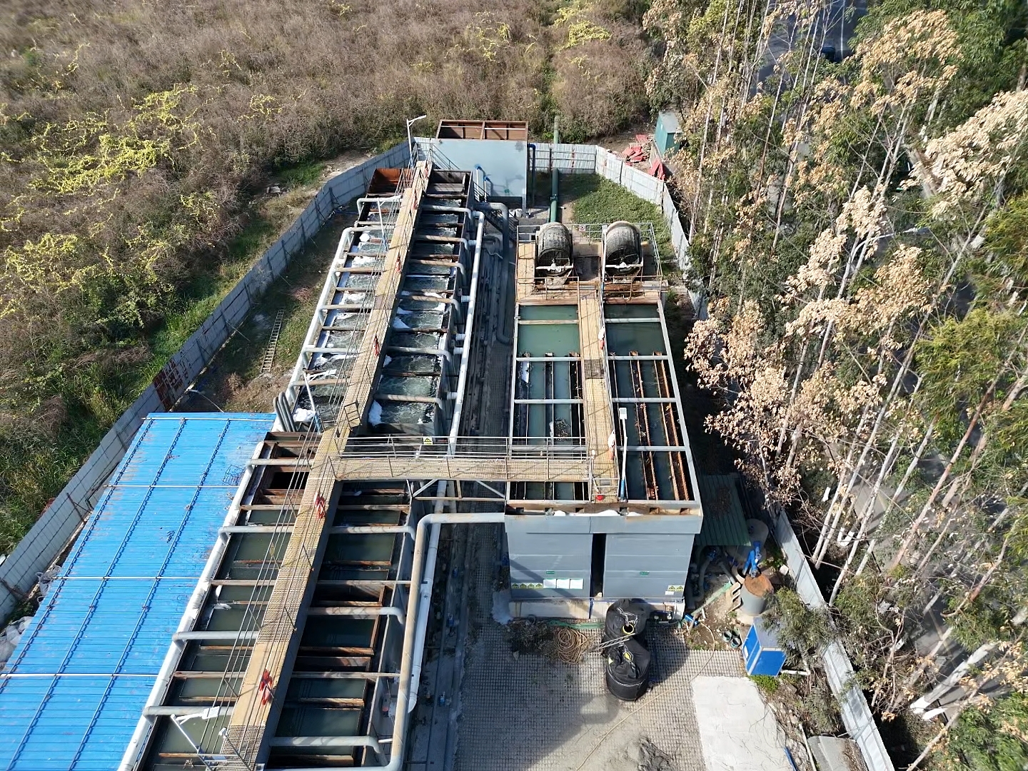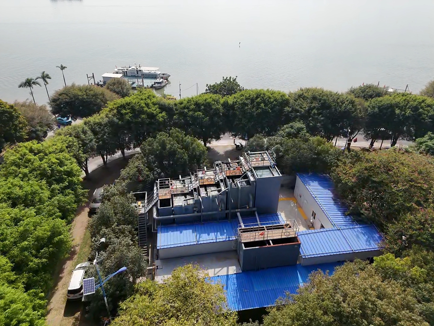 馬克村站點(diǎn)位于西樵水道特大橋南側(cè)、西瀝東側(cè)堤壩岸邊,設(shè)計(jì)規(guī)模為4000m3/d,最大日處理量4800噸/天,主要處理市政管網(wǎng)溢流和居民無組織排放的污水。
