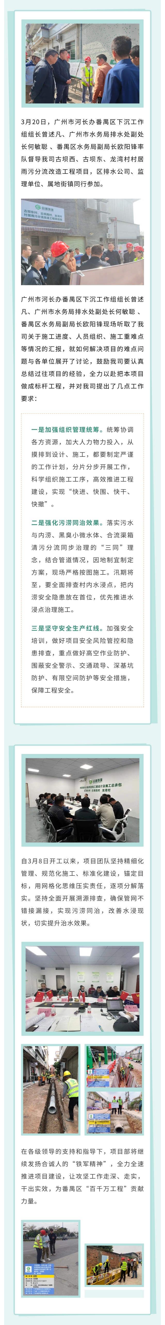 廣州市河長辦番禺區(qū)下沉工作組等領(lǐng)導(dǎo)調(diào)研我司村居雨污分流改造工程