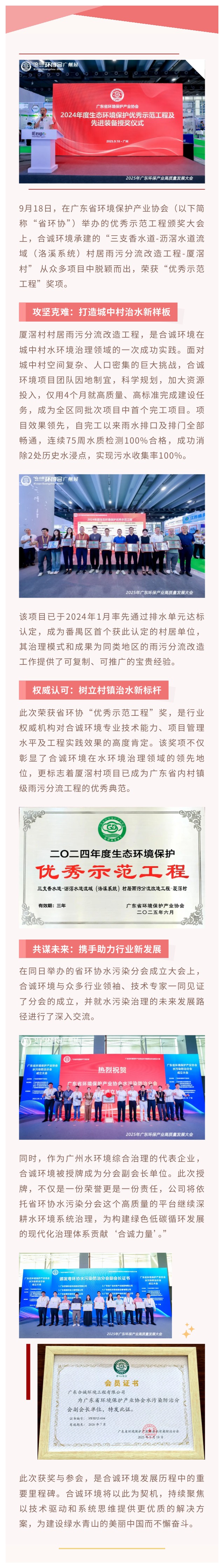 喜訊丨合誠環(huán)境廈滘村村居雨污分流改造工程榮獲優(yōu)秀示范工程獎
